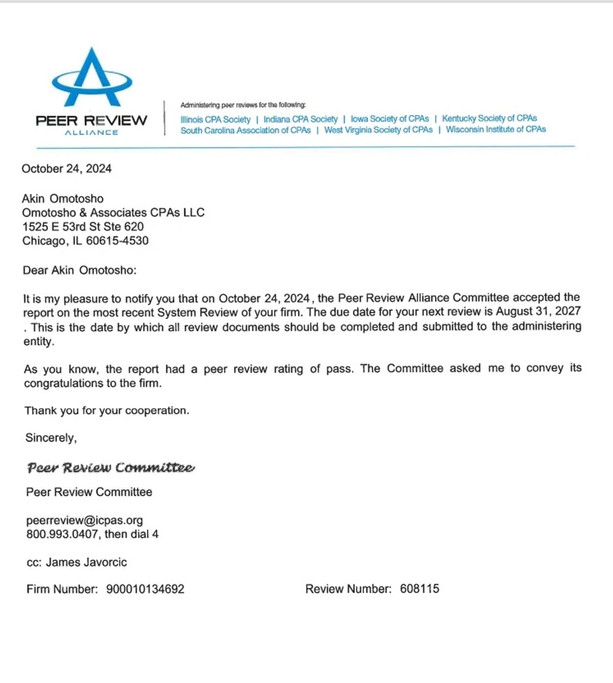 For More infomation click about AICPA peer review click link below or click on the scanned image of our most recent peer review: